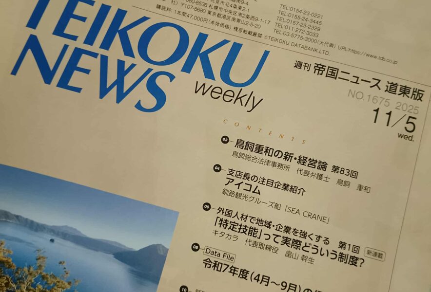 週刊「帝国ニュース 道東版」にてコラム連載を開始しました